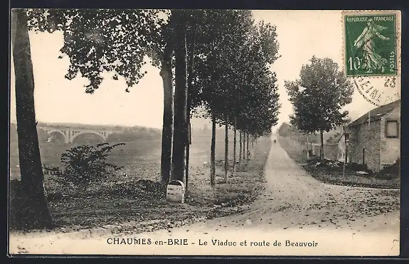 AK Chaumes-en-Brie, Le Viaduc et route de Beauvoir