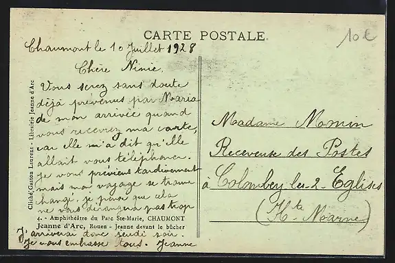 AK Chaumont, Amphithéâtre du Parc Ste-Marie, Jeanne d`Arc devant le bûcher