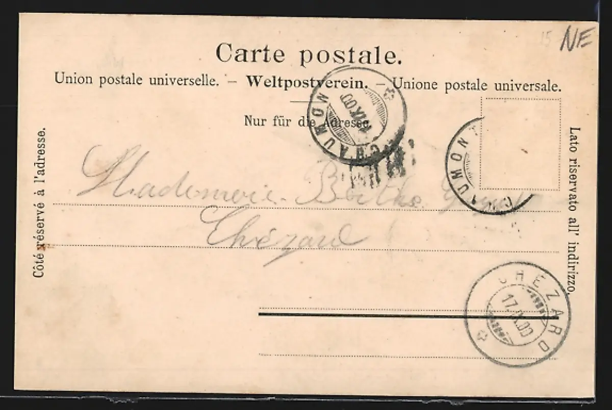 alte Ansichtskarte, gelaufen 1900, Briefmarke entfernt, guter Zustand