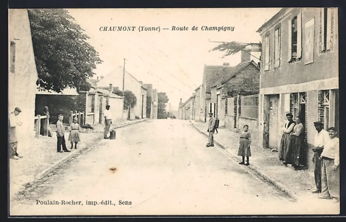 AK Chaumont /Yonne, Route de Champigny avec des habitants devant les maisons