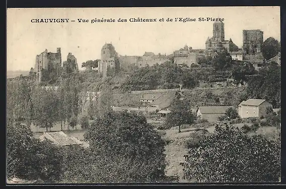 AK Chauvigny, Vue générale des Châteaux et de l`Église St-Pierre