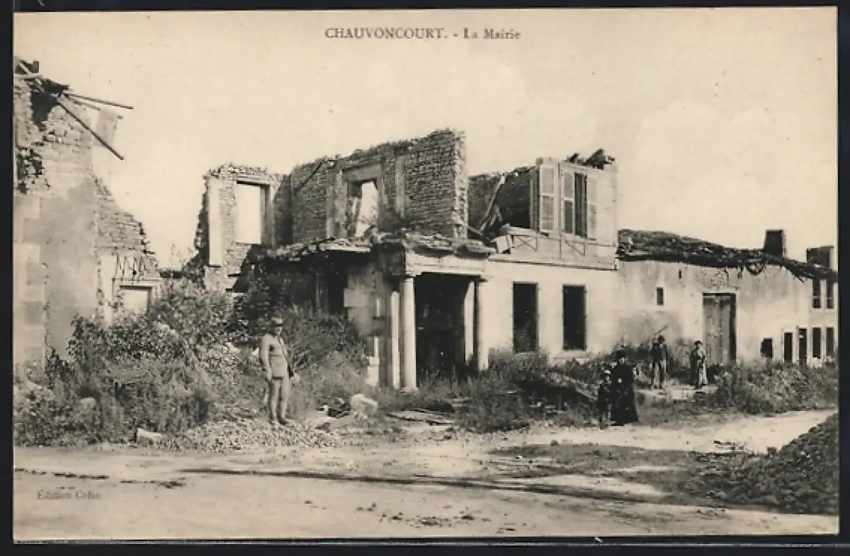AK Chauvoncourt, La Mairie en ruines après un conflit