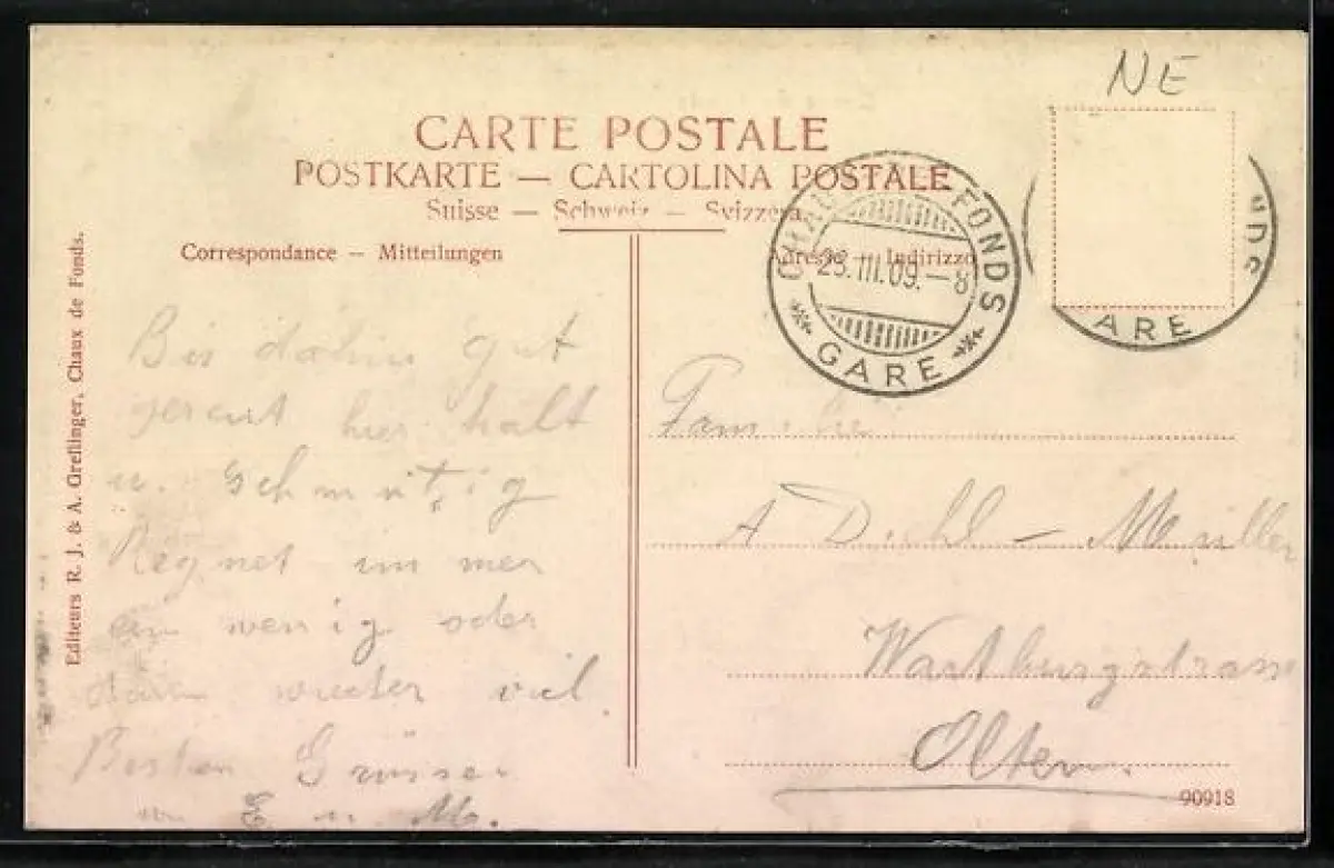 gelaufen 1909, Briefmarke entfernt, guter Zustand