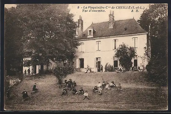 AK Cheillé, La Plogninière, vue d`ensemble avec jardin et visiteurs