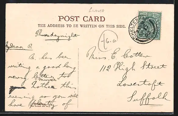 gelaufen 1903, Eckknick li. oben, Bugspur li. oben, guter Zustand
