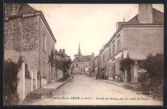 AK Chemillé-sur-Dême, Entrée du bourg par la route de Tours