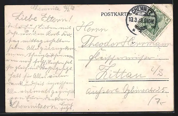 alte Ansichtskarte, gelaufen 1908, guter Zustand