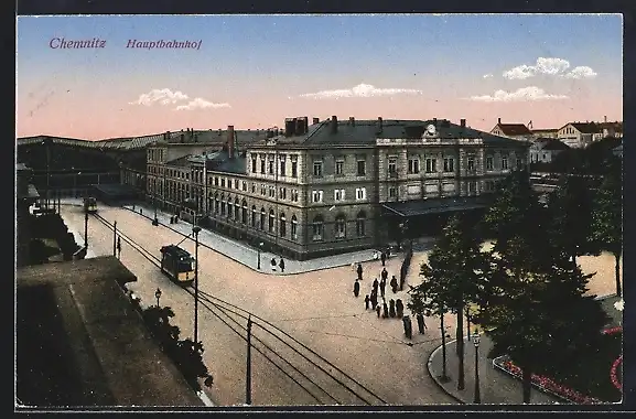 AK Chemnitz, Hauptbahnhof mit Strassenbahn