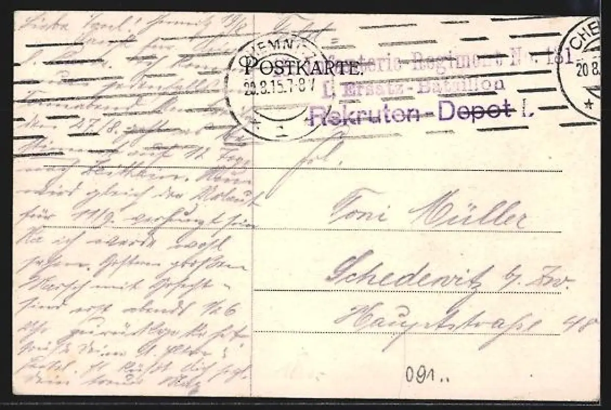 alte Ansichtskarte, gelaufen 1915, Stempelspur, guter Zustand