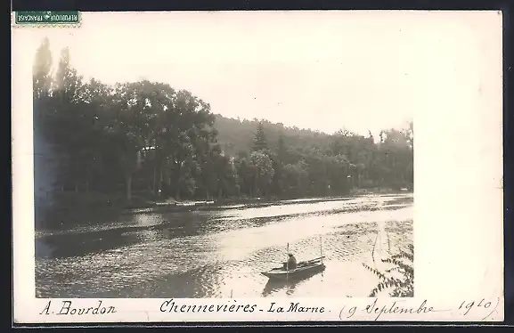 AK Chennevières, Vue sur la Marne avec un bateau à rames