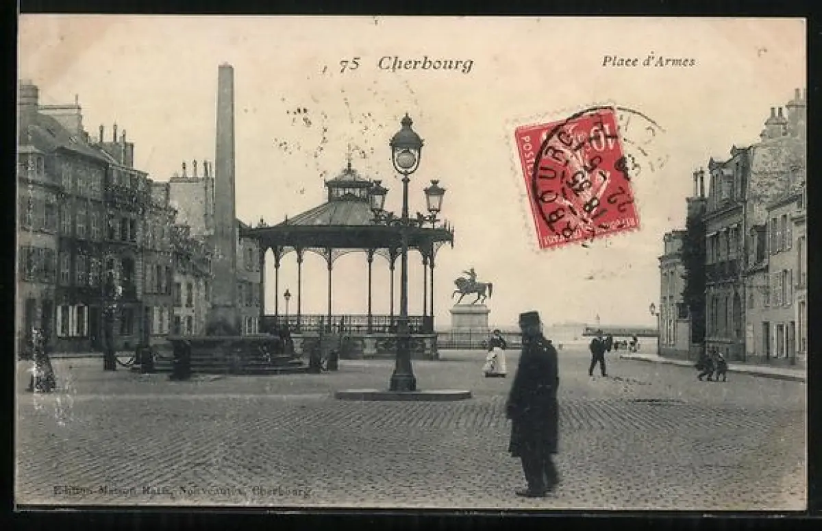 AK Cherbourg, Place d`Armes avec kiosque et statue équestre