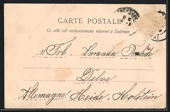 alte Ansichtskarte, gelaufen, Briefmarke entfernt, Stempelspur, guter Zustand