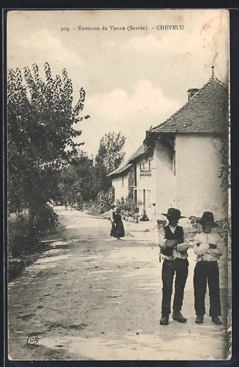 AK Chevelu /Yonne, Rue de village avec habitants discutant devant une maison