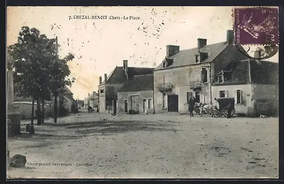 AK Chezal-Benoît, La Place avec calèche et bâtiments historiques