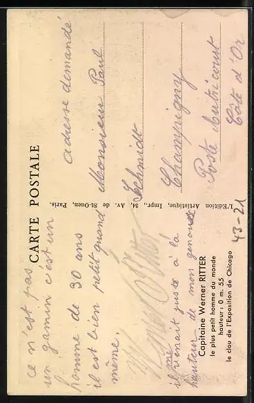 AK Chicago, A Century of Progress 1933, Capitaine Werner Ritter, der kleinste Mann der Welt