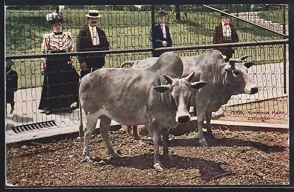 AK Chicago, Büffel im Freigehege mit Besuchern