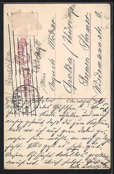 alte Ansichtskarte, gelaufen, Briefmarke entfernt, guter Zustand
