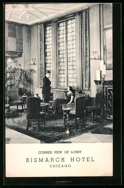 AK Chicago, IL, Bismarck Hotel, Corner view of lobby