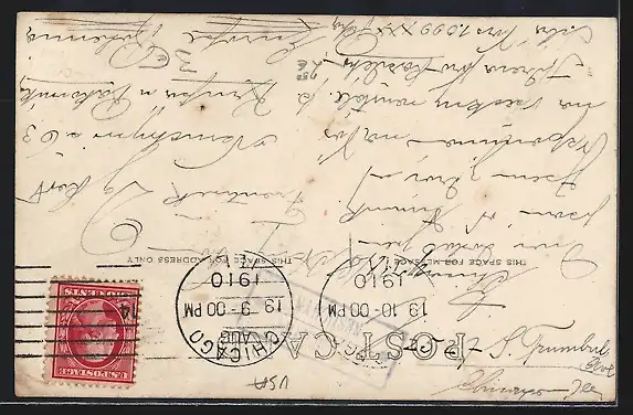 gelaufen 1910, Eckknick re. unten, guter Zustand