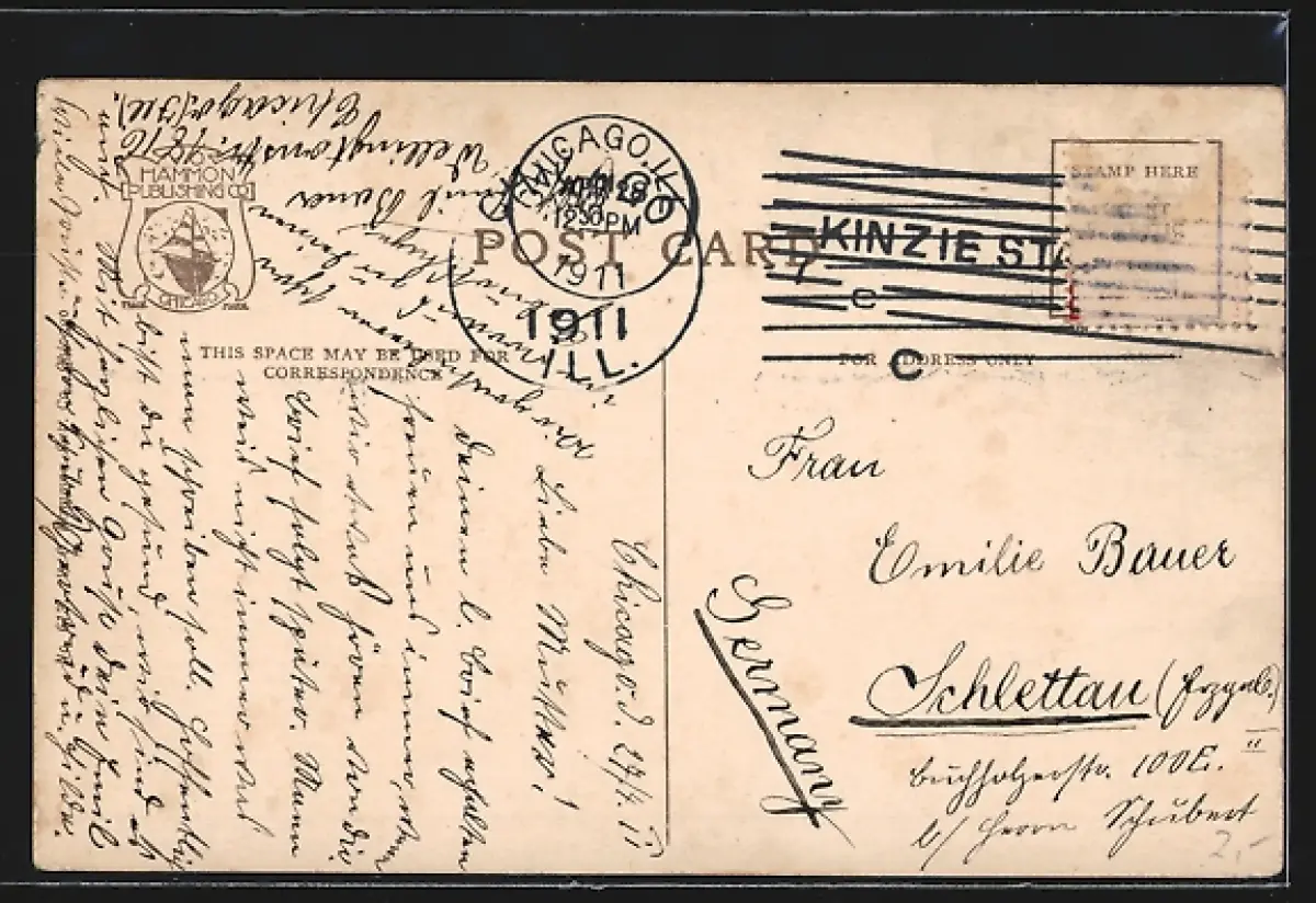 gelaufen 1911, Briefmarke entfernt, guter Zustand