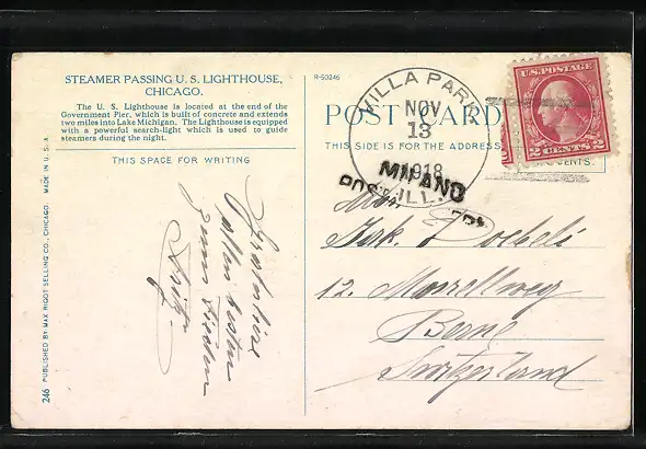 AK Chicago, Steamer passing U. S. Light House, Leuchtturm