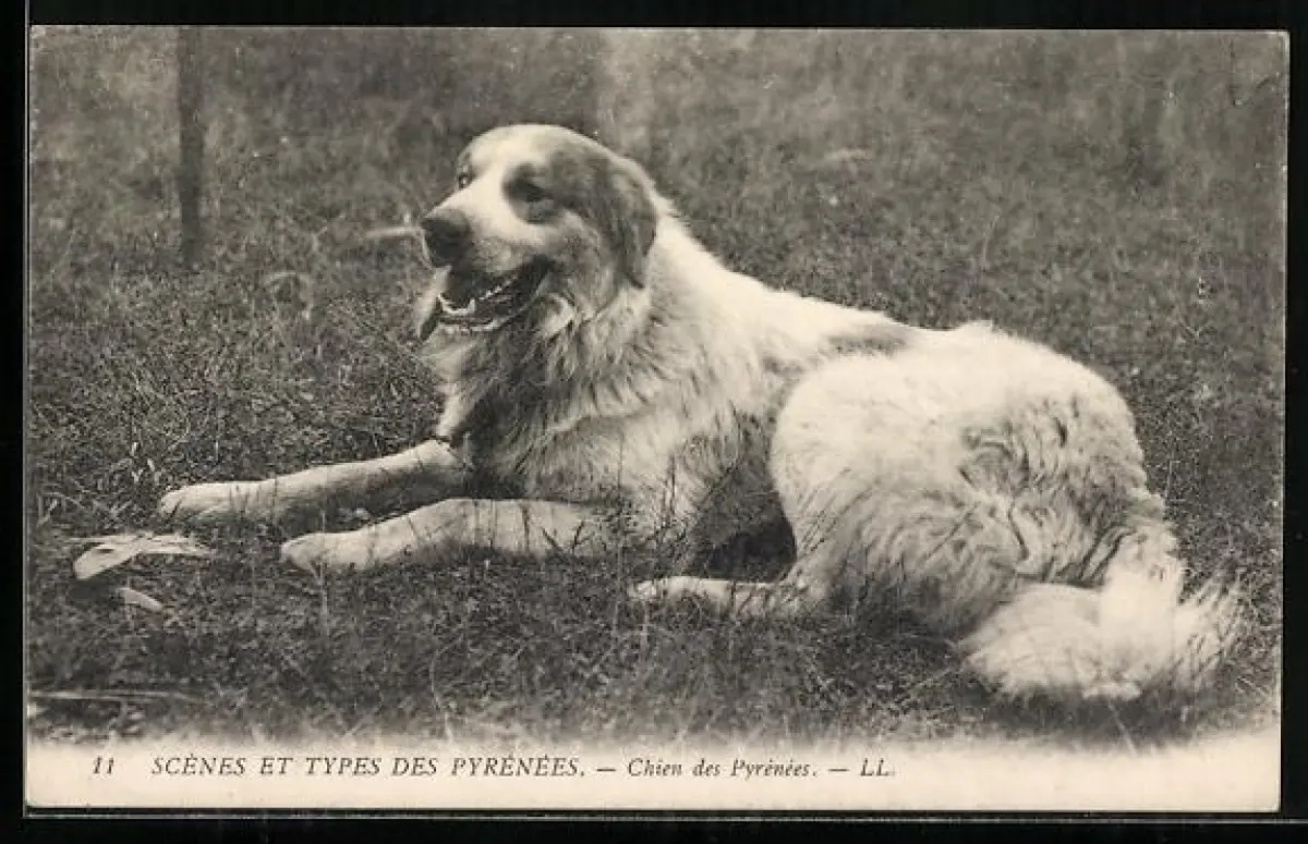 AK Chien des Pyrénées, Pyrenäenberghund liegt auf der Wiese
