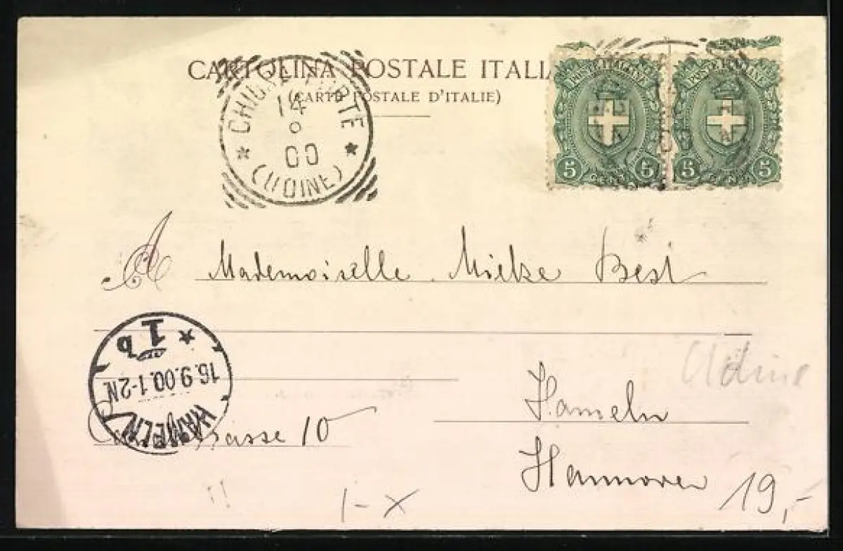 alte Ansichtskarte, gelaufen 1900, Eckknick links oben, guter Zustand