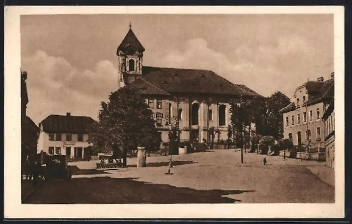 AK Chodau, Ortspartie an der Kirche