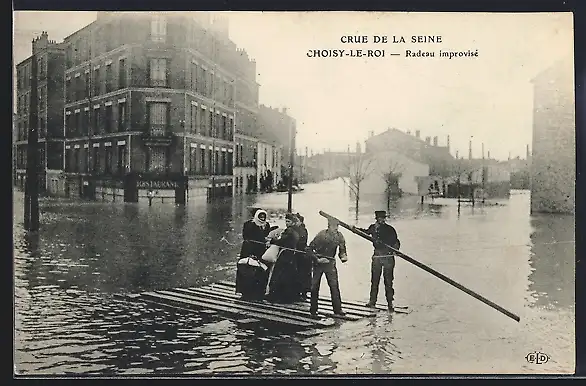 AK Choisy-le-Roi, Crue de la Seine, Radeau improvisé