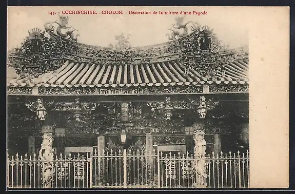 AK Cholon /Cochinchine, Décoration de la toiture d`une Pagode