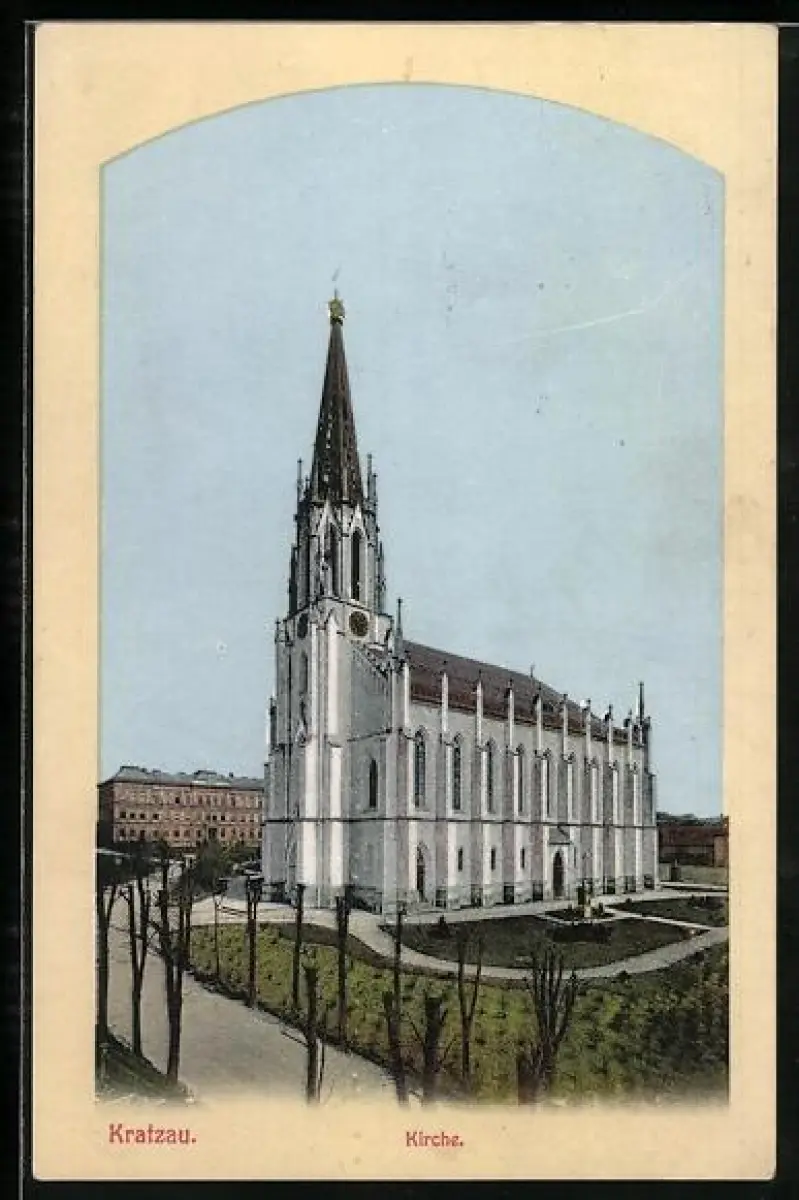 AK Chrastava-Kratzau, Teilansicht mit Kirche