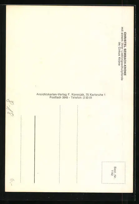 AK Christel Sembach-Krone mit einem ihrer Lieblingsschulpferde im Zirkus Krone
