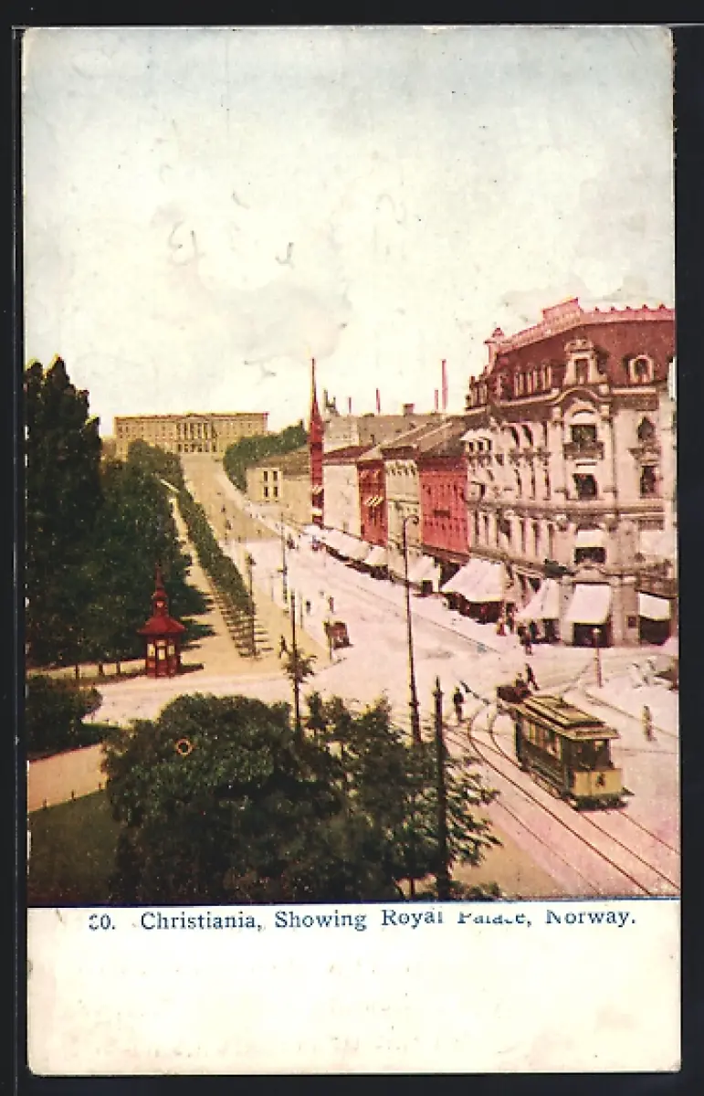 AK Christiania, Showing Royal Palace, Strassenbahn