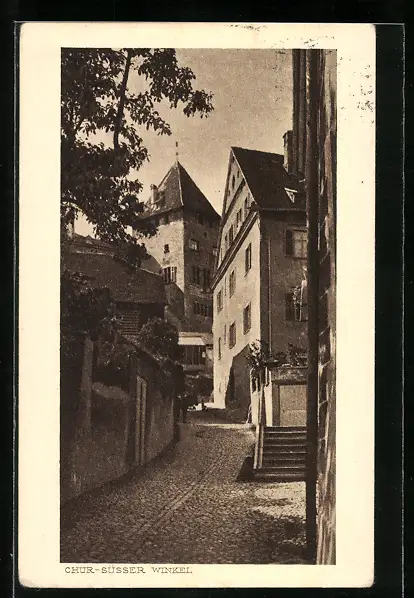 AK Chur, Strasse Süsser Winkel mit Bäumen