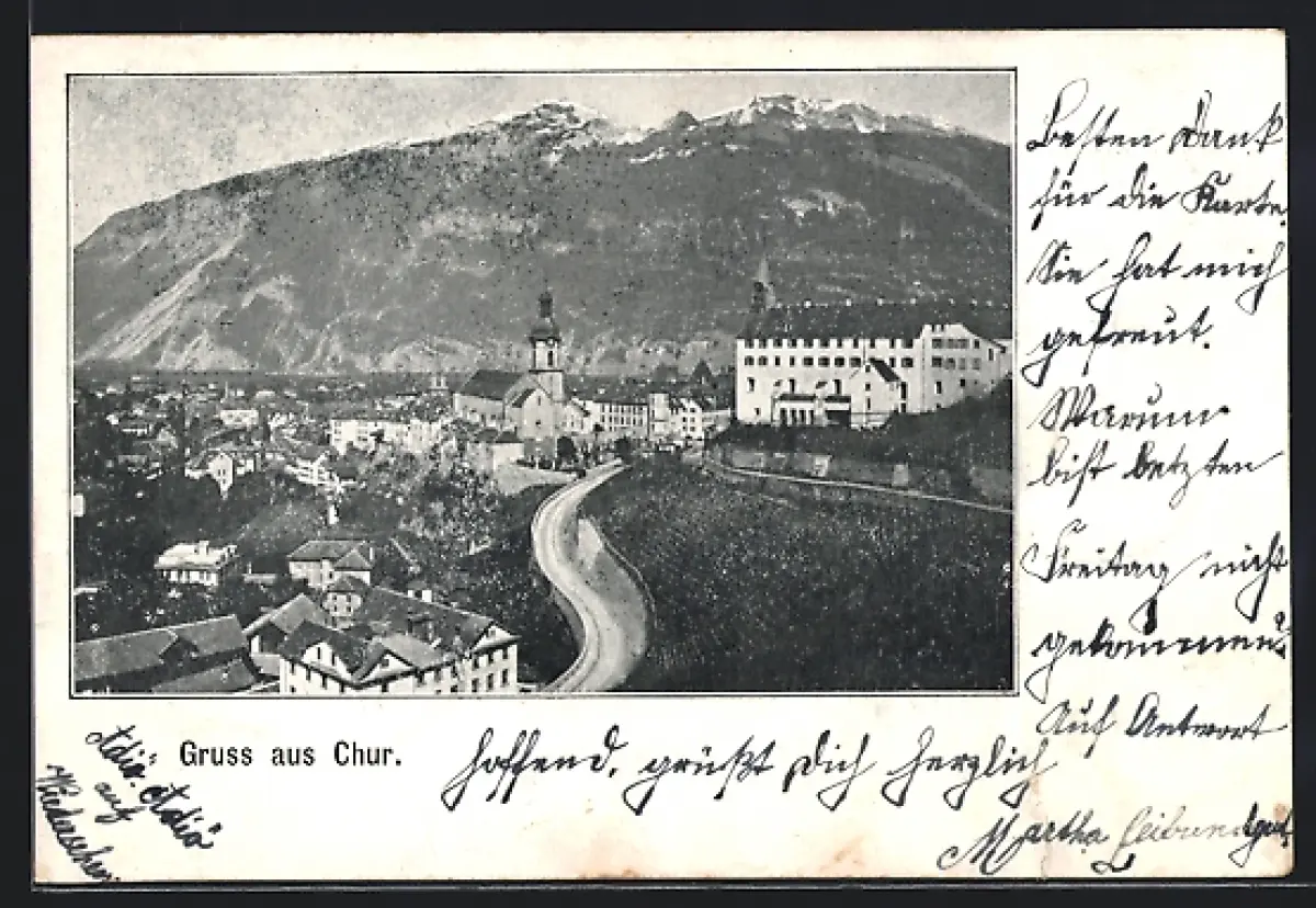 AK Chur, Strassenpartie mit Kirche