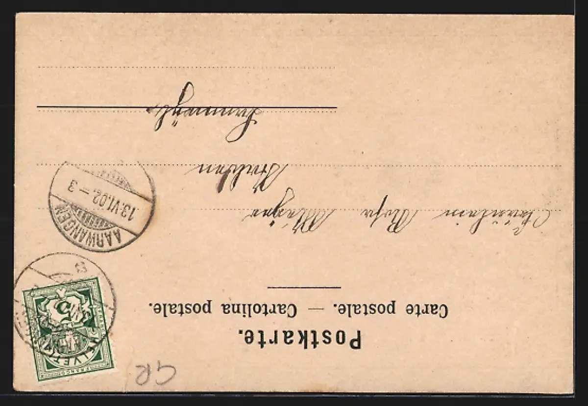 alte Ansichtskarte, gelaufen 1902, Eckknick re. unten, restaurierter Einriss re. unten, guter Zustand
