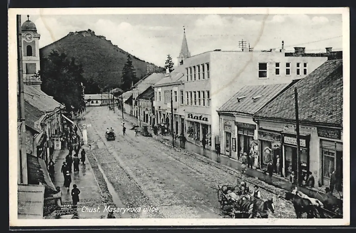 AK Chust, Masarykova ulice, Pferdegespann