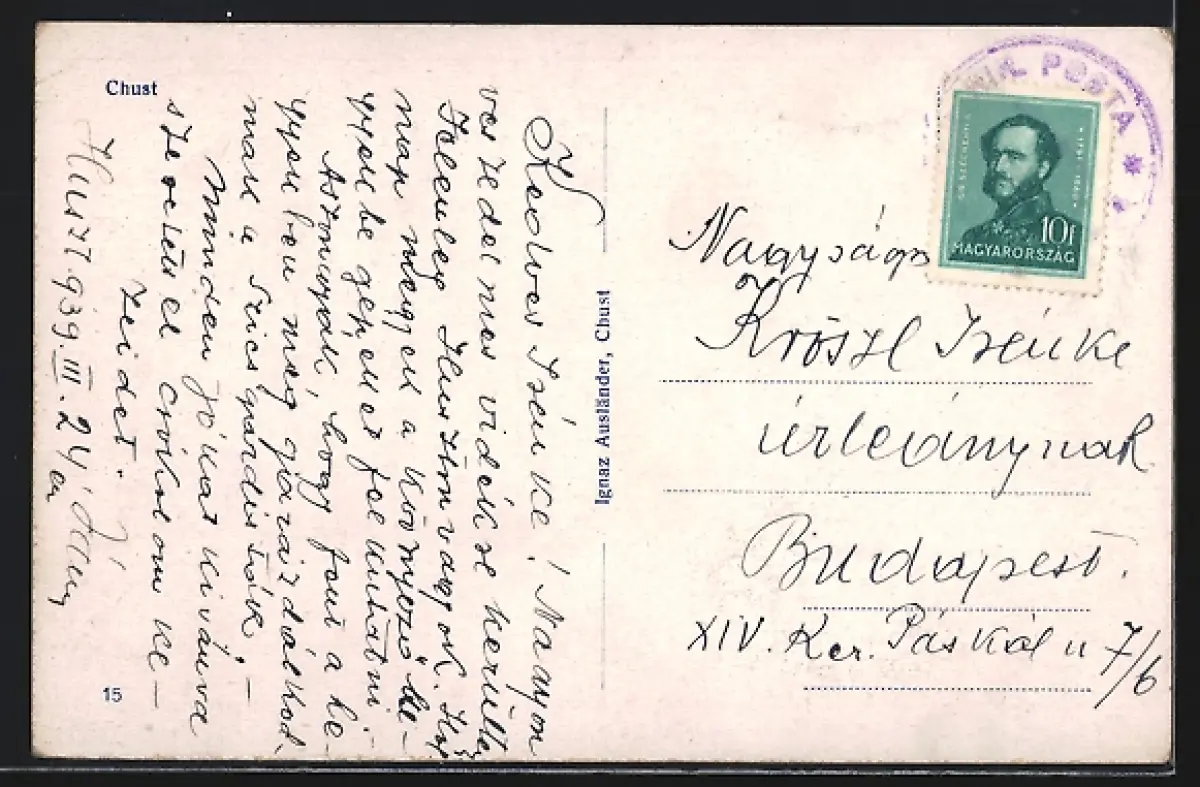 AK Chust, Post, Gerichtsgebäude und Festung, Strassenpartie