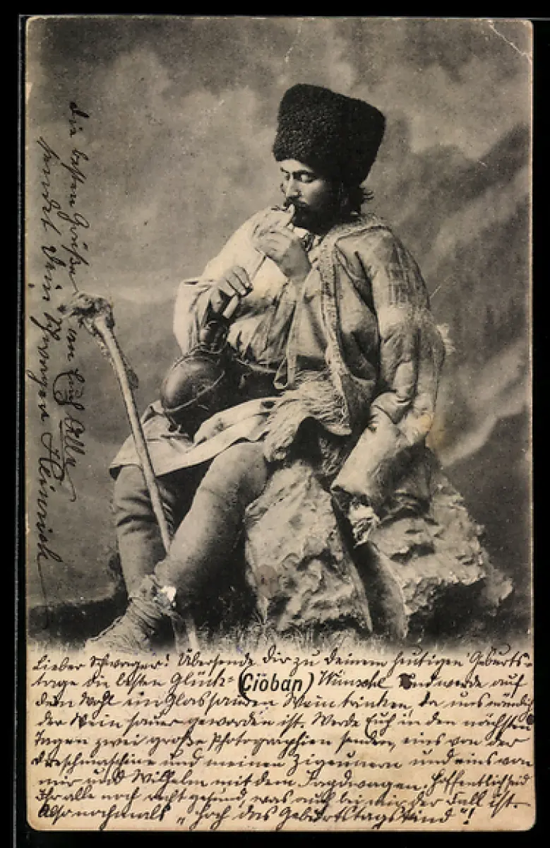 AK Cioban, Rumänischer Hirte mit Flöte