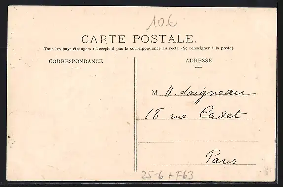 Personenbezogene Daten auf der Rückseite der Karte wurden durch blauen Textmarker unkenntlich gemacht. Die blauen Stellen sind auf die Vorderseite durchgeweicht und wirken sich negativ auf das Postkartenfoto aus