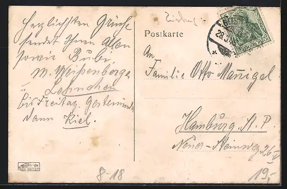 gelaufen 1908, Bugspur li. unten, guter Zustand