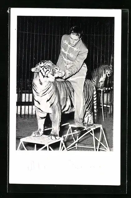 AK Circus Willy Hagenbeck, Dompteur mit Tigern