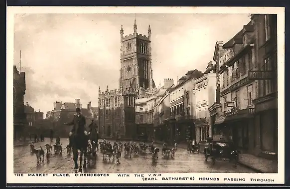 AK Cirencester, The Market Place with the V. W. H., Earl Bathurst`s Hounds passing through