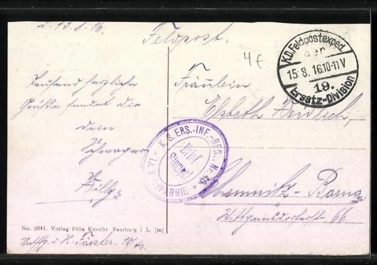 alte Ansichtskarte, gelaufen 1916, Eckknick oben li., guter Zustand