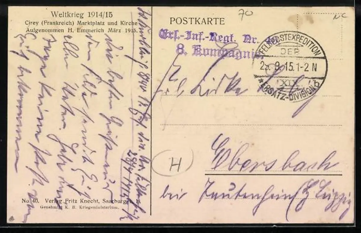 AK Cirey, deutsche Soldaten auf dem Marktplatz und vor der Kirche 1915