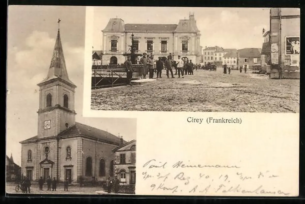 AK Cirey, l`église, soldats sur la place