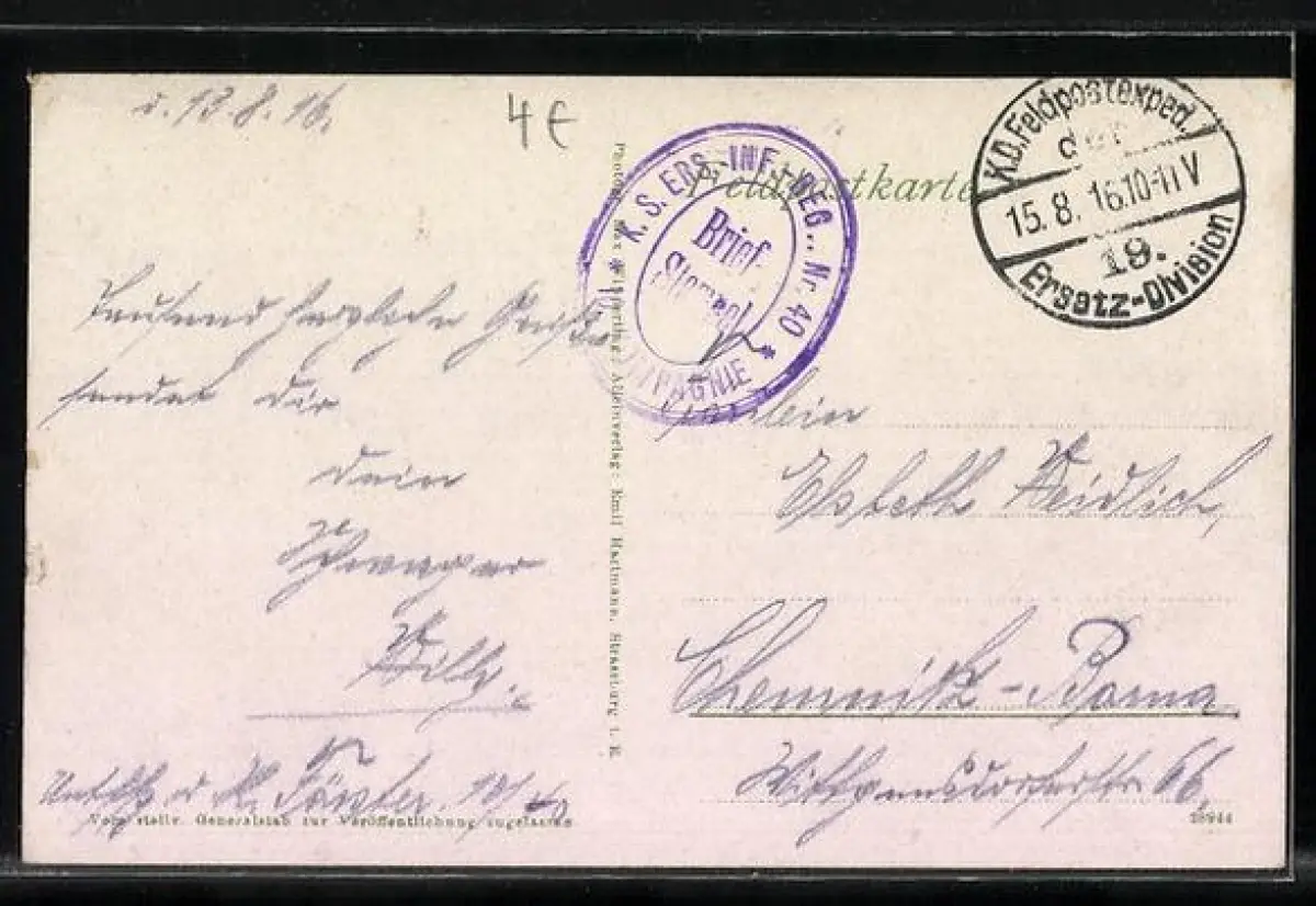 alte Ansichtskarte, gelaufen 1916, kl. Einriss re. unten, Eckknick oben re., guter Zustand