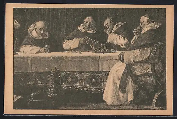 AK Cirkev a jeji instituce vlastní jen v Cechách..., Mönche an der Tafel, Religion