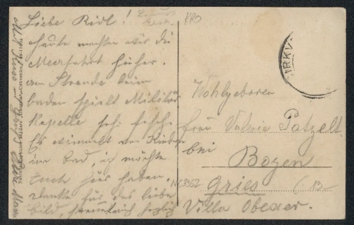 alte Ansichtskarte, gelaufen, Briefmarke entfernt, guter Zustand