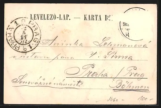 alte Ansichtskarte, gelaufen 1902, Briefmarke entfernt, rückseitig Oberflächenschaden, Stempelspur, guter Zustand